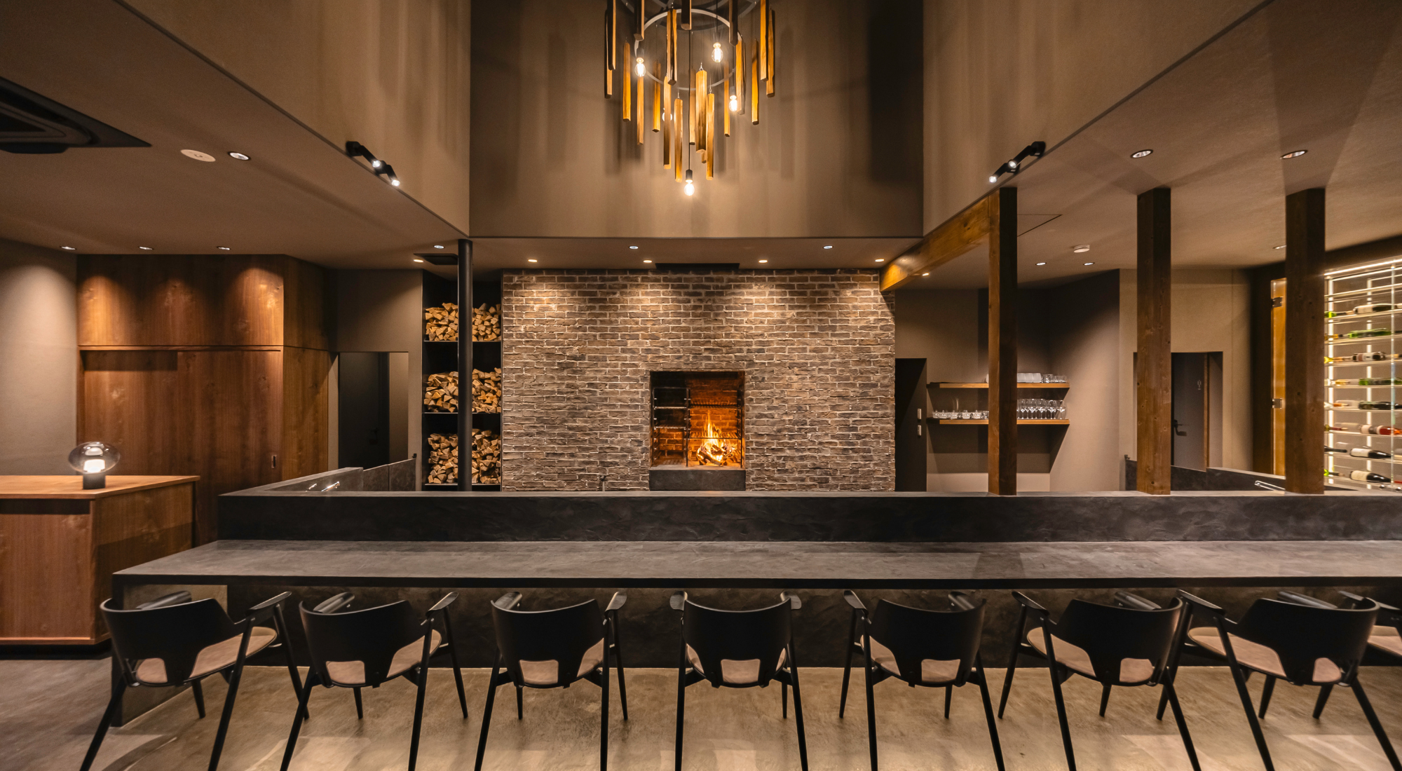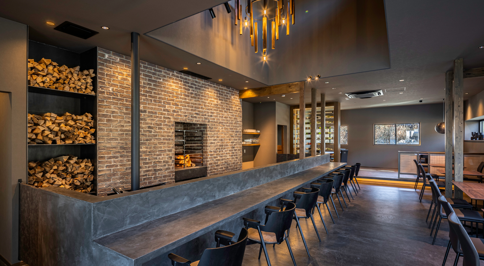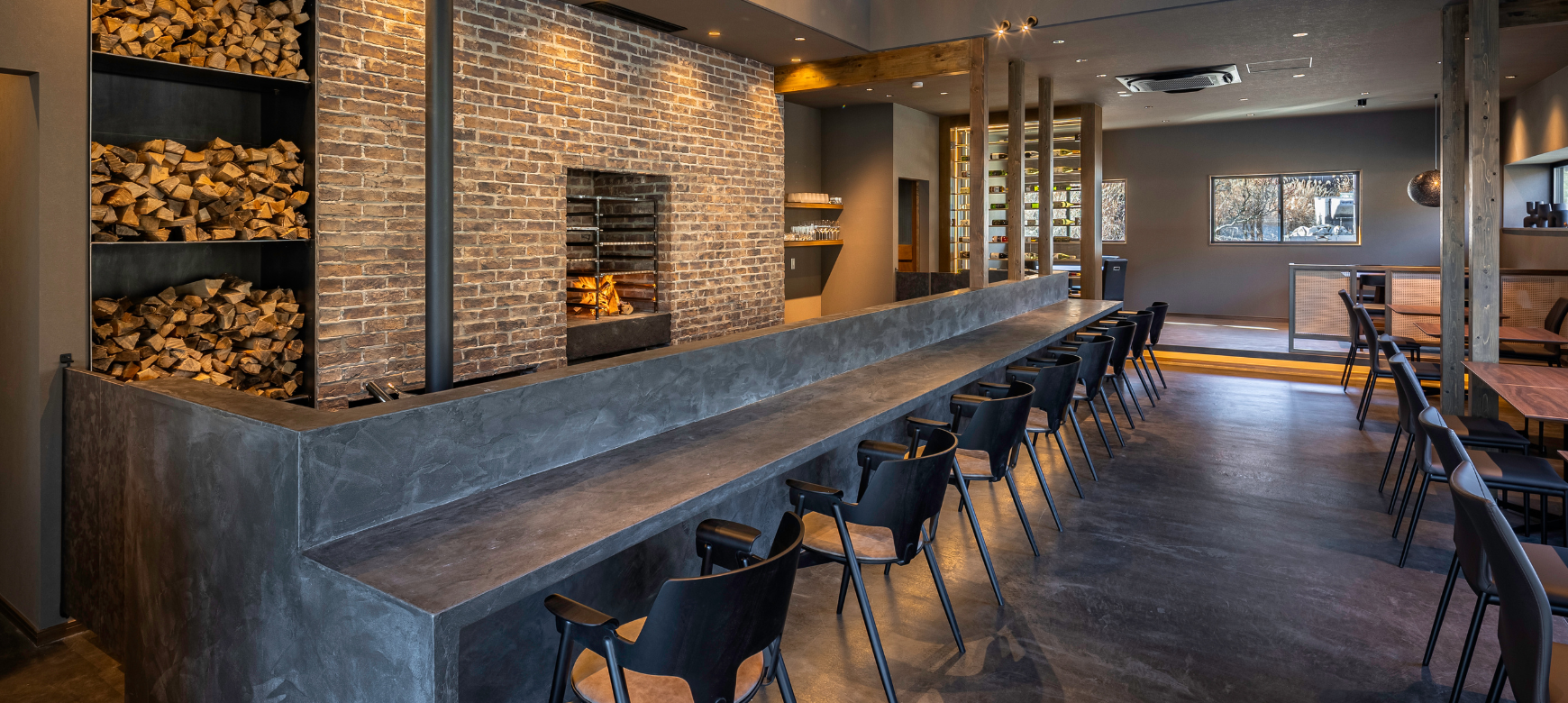 薪窯の香りに誘われるレイアウトでエイジング感があたたかさとセンスの高さを感じられるRestaurant。