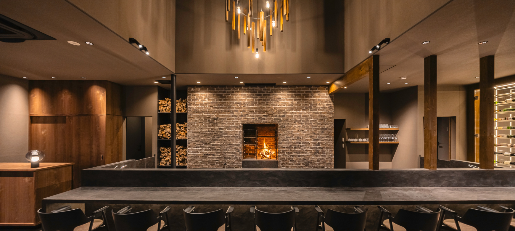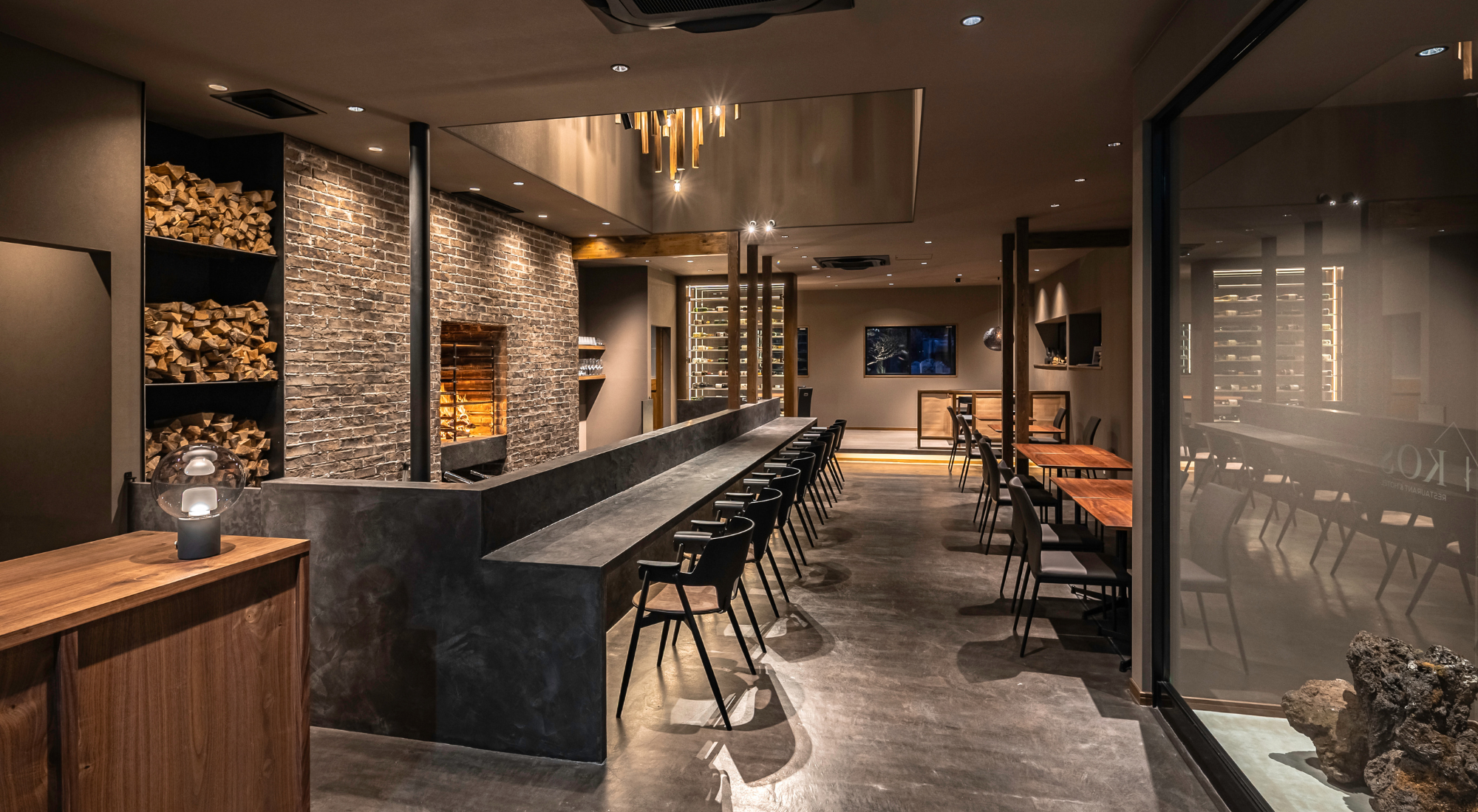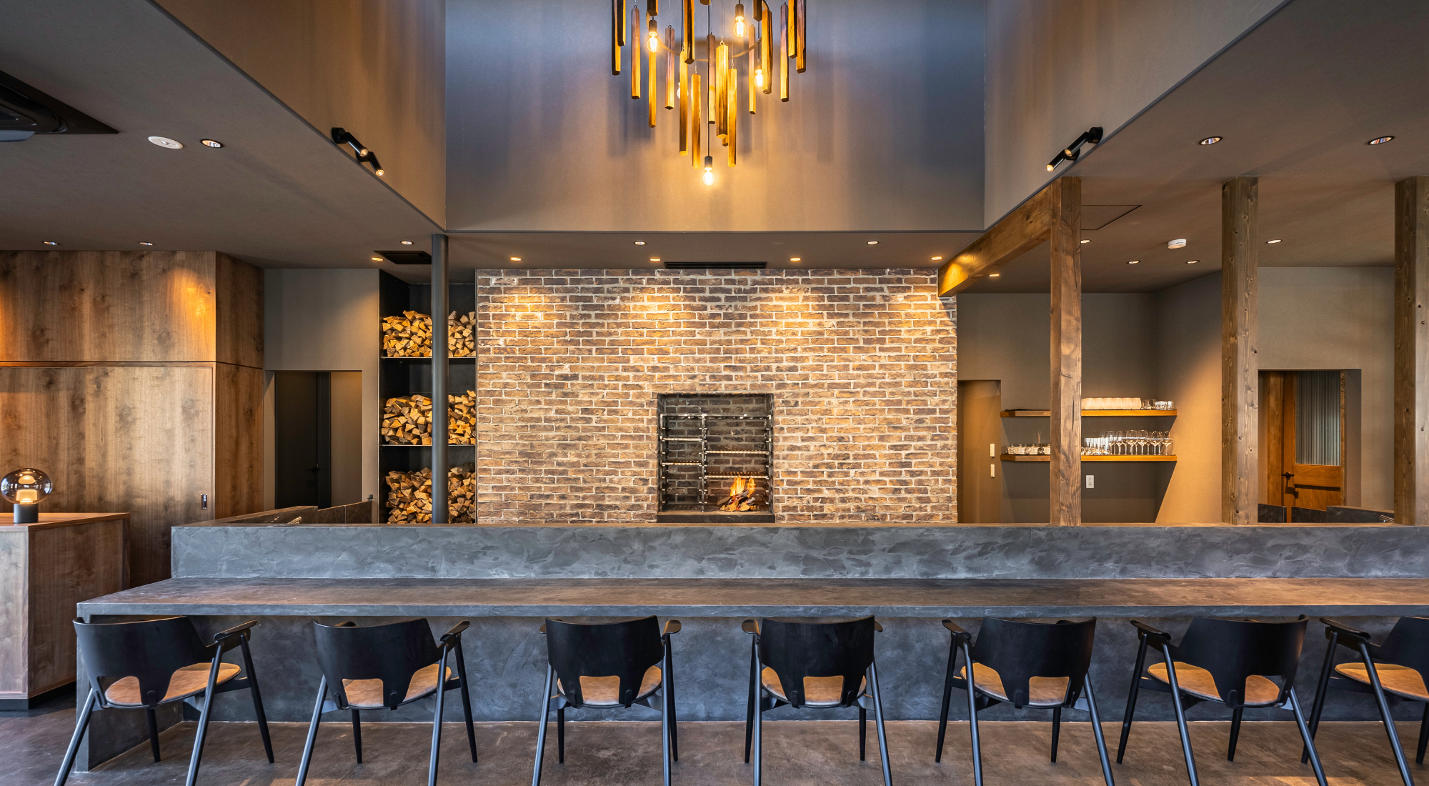 薪窯の香りに誘われるレイアウトでエイジング感があたたかさとセンスの高さを感じられるRestaurant。